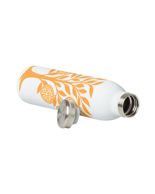 Botella de acero inoxidable de 750 ml con aislamiento al vacío, diseñada para mantener tus bebidas frías o calientes durante 6–12 horas.